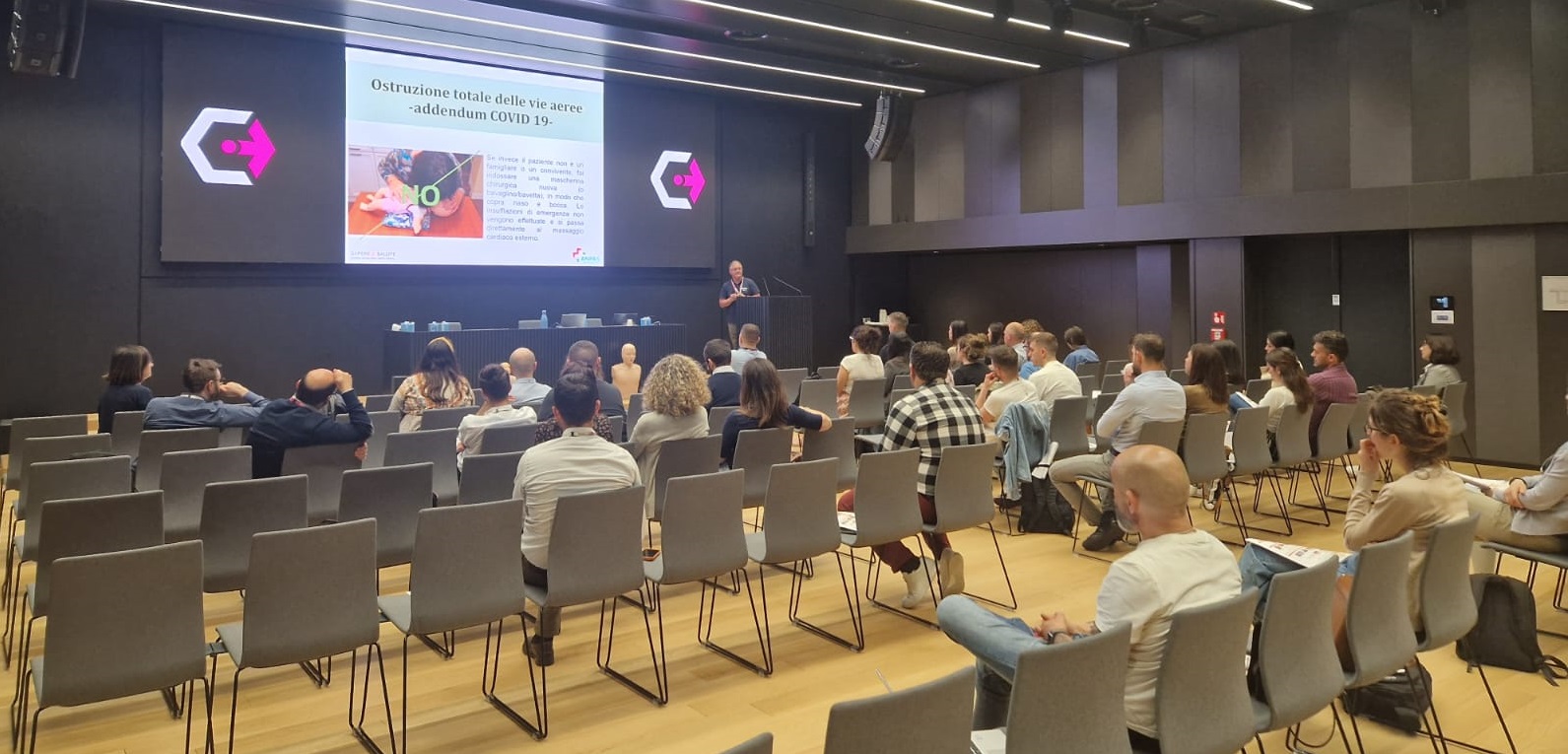 Racconta Luigi Salucci del Gruppo Chiesi: “E’ stata davvero un’esperienza importante, che sia i partecipanti che i vertici aziendali hanno estremamente apprezzato, tanto che per il 2024 abbiamo già un piano di lavoro molto intenso di ulteriori attività formative con Anpas. Terremo un corso ai dipendenti sull’uso del defibrillatore, e visto che parliamo di un Gruppo che ha filiali in tutto il mondo con oltre 6.500 dipendenti, stiamo ipotizzando anche delle attività da tenere in videoconferenza per le famiglie dei dipendenti. Sui primi corsi che abbiamo svolto, abbiamo anche effettuato una rilevazione dell’indice di gradimento, che è andato oltre ogni aspettativa, siamo molto soddisfatti. Inoltre abbiamo svolto anche una formazione rivolta alle insegnanti e alle famiglie della scuola per l’infanzia Maria Mazzarello di Parma, che collabora su alcuni progetti con Chiesi Farmaceutici, per le maestre e le famiglie sulla disostruzione pediatrica. Vorrei ringraziare alcuni colleghi Chiesi per la collaborazione data in tutte le fasi del progetto, Katyusha Lorenzelli, Wellbeing and D&I Senior Specialist, Ilaria Pisaroni, Payroll Specialist e William Berti, Corporate Security & Travel Risk Manager e formatore Anpas, così come Federica Piazza formatrice Anpas, Luca Zalaffi e Luciano Francesconi che hanno avuto un ruolo fondamentale nelle attività, così come Cristiana Madoni, responsabile operativa della commissione scientifica regionale Anpas, e Danilo Pelosi, Head of Rare RoW Cluster sempre del Gruppo Chiesi, che ha portato la bella testimonianza di una vita salvata, pochi anni fa, con le manovre di disostruzione”.